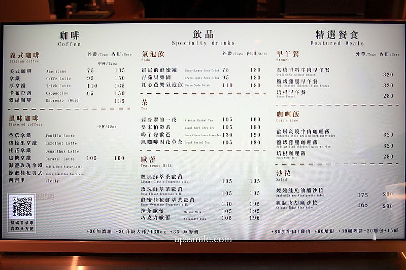 CE’ & LIB-RARY 天母店菜單,還在試營運,2025年天母這間菜單上選擇沒有台北遼寧街本店多樣化,天母店餐點目前以輕食、咖啡、甜點等,價錢親民,沒負擔。