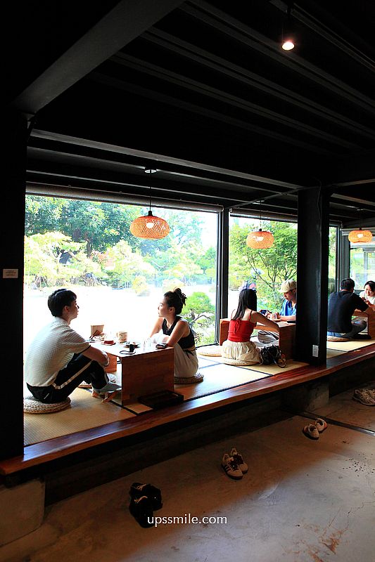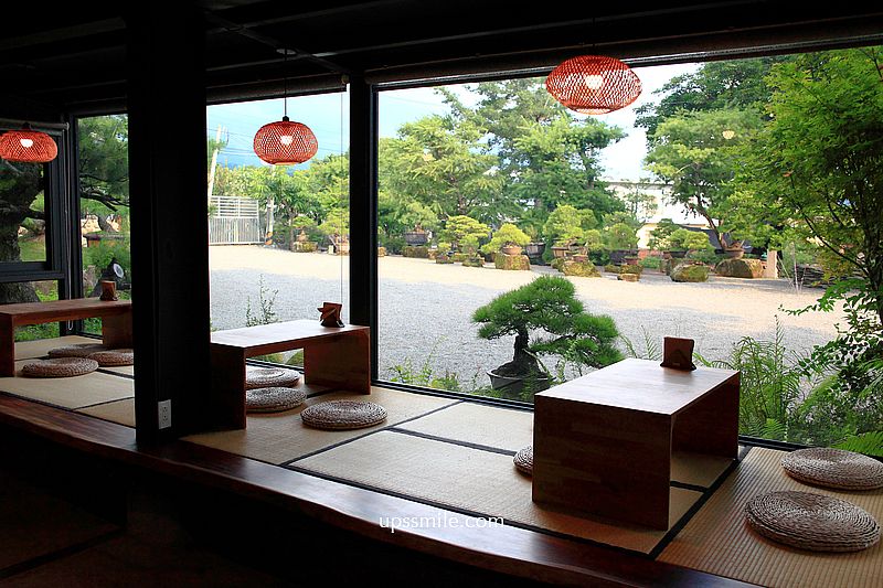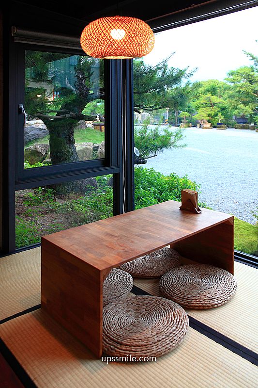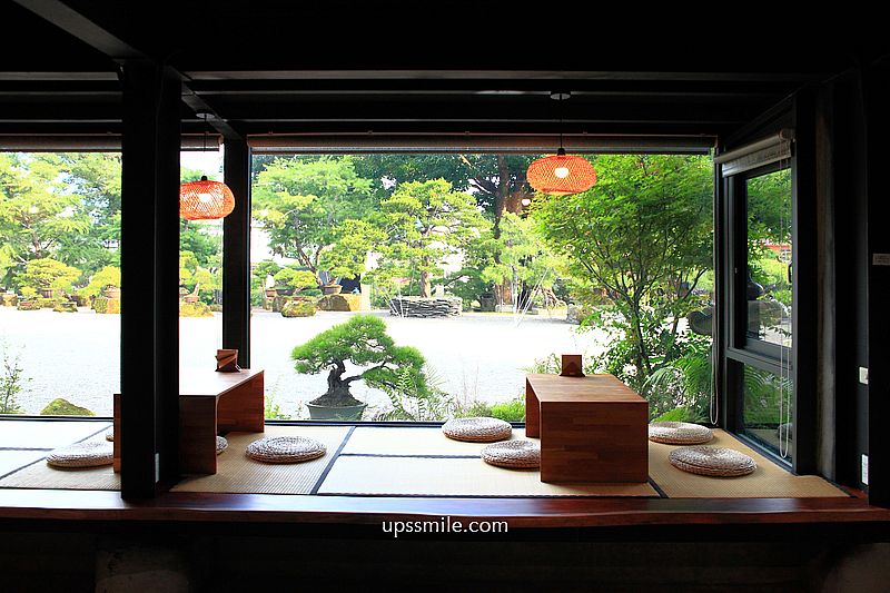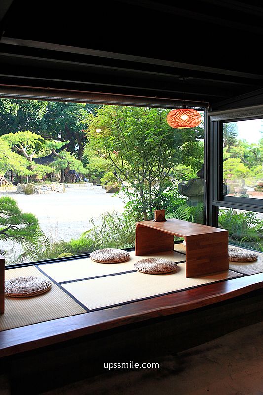 滿滿日式禪意造景,大片窗景,眼前綠色植栽,日式庭園全收入眼前,榻榻米咖啡館,好絕美。
