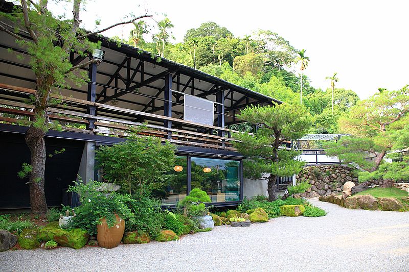 打造日式庭園,寬敞大空間,鋪著滿滿石仔,這片日式庭院免費參觀,只要點杯咖啡就可享受這庭園風景,多了種枯山水意境,秒出國,彷彿偽出國景點,到了日本哪個庭園神社造景,一開幕,萍子就收口袋,終於這次朝聖了,苗栗山城之旅。