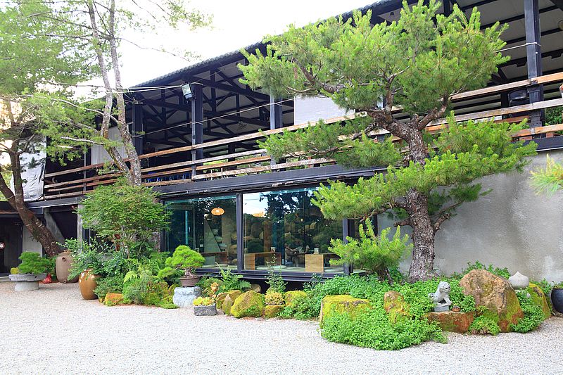 Project C3 cafe,主要建築來自這棟水泥灰玻璃屋的日式建築,二樓是早期規劃的盆栽教室,讓學員上課,雕刻盆栽造景。