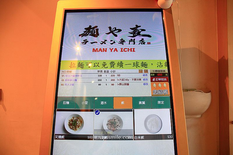 用點餐機,麵や壹ラーメン專門店菜單,直接點餐,用現金付款,圖文並茂,點餐方式方便。