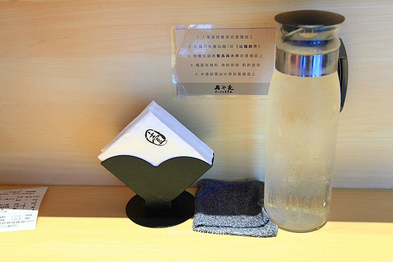 桌上提供餐巾與冰水,吃拉麵配冰水很絕配。