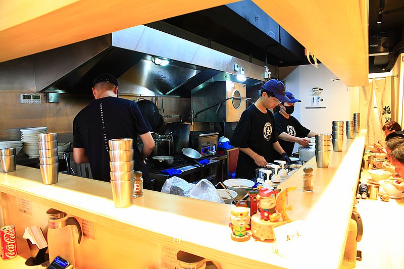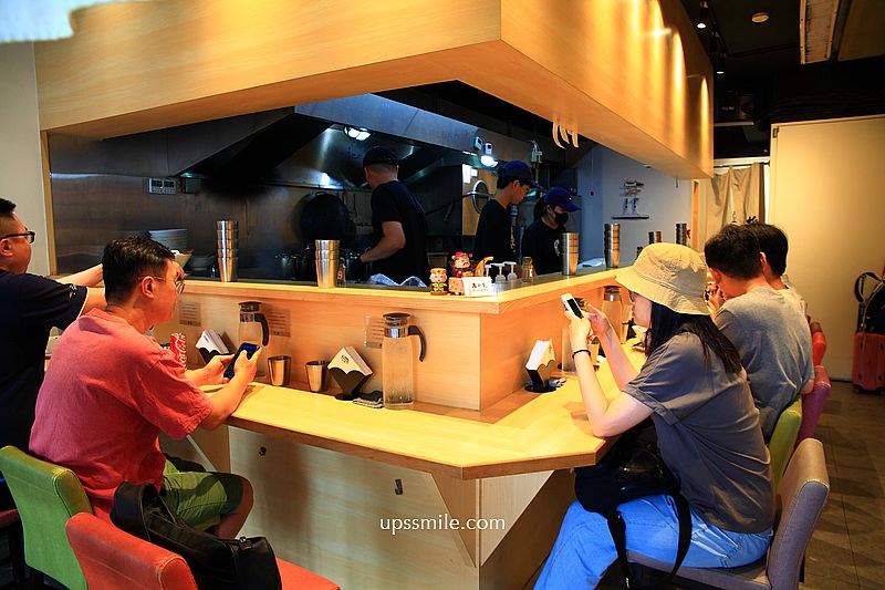 日式裝潢拉麵店,宛如到了日本拉麵店用餐氛圍,打造傳統拉麵店設計,簡約乾淨明亮日式氛圍,桌邊吧檯位置,近距離可見眼前料理過程,拉麵上桌很快,翻桌率高,不用擔心等很久。
