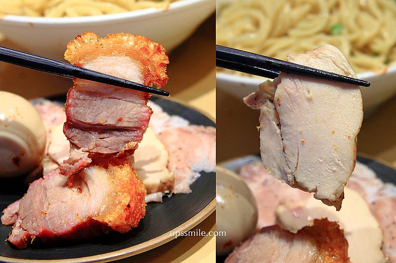 脆皮叉燒,肥瘦比例拿捏剛好,肥美的油花,外層表皮微焦脆,焦香脆口,內吃起來嫩度不柴,入口即化,不膩口。雞胸肉像是舒肥過,粉嫩色,嫩口不柴。