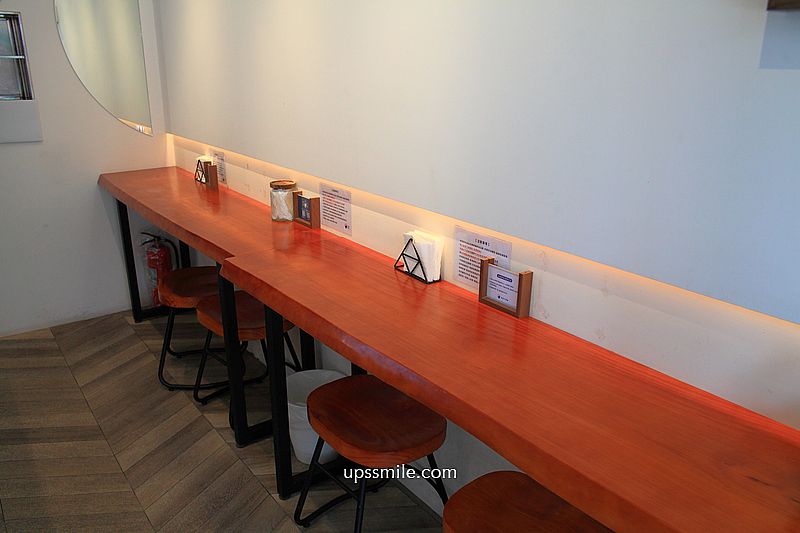 內用木質桌面,搭配木椅,室內可乘坐6人空間,空間不大,至少可內用吃個冰,挺不賴。