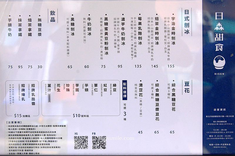 日森甜食RISEN,提供豆花、日式刨冰專賣店,銅板美食到百元美食,竟然有外送服務,真的很猛,不怕冰溶化,內用點餐低消一份餐點(豆漿除外)。