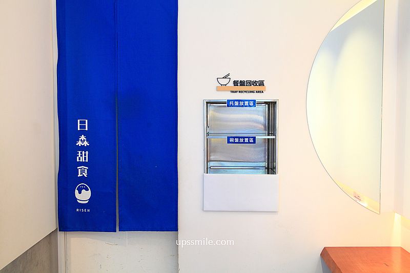 吃完餐盤回收,擺放在這小櫥窗櫃台即可。