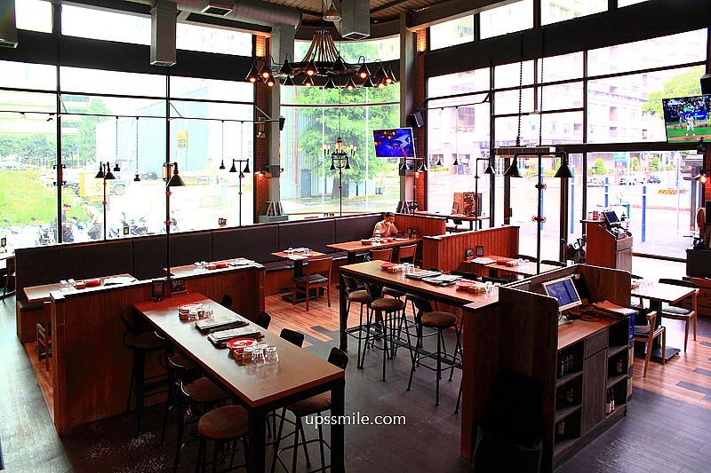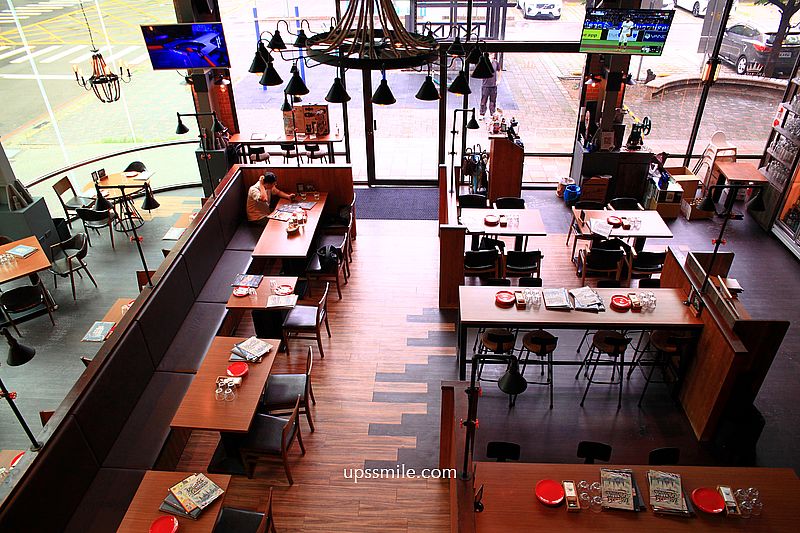 以歐洲釀酒廠造型打造餐酒館,台灣目前最大的精釀啤酒餐廳,映入眼簾,大片落地窗玻璃,挑高空間,木質裝潢,打造美式復古工業風與木質調裝潢,兩層樓空間的地中海餐酒館設計風格,可容納百人空間,整個氛圍感很好,適合三五好友聚餐。