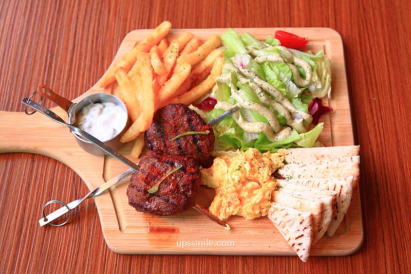 手工土耳其式牛肉餅串佐批塔早午餐319元,有土耳其式牛肉餅串、批塔麵包、凱薩沙拉、酥脆炸薯、炒蛋組合,擺盤豐盛,胃口大開,又是一款充滿異國風情的土耳其佳餚。