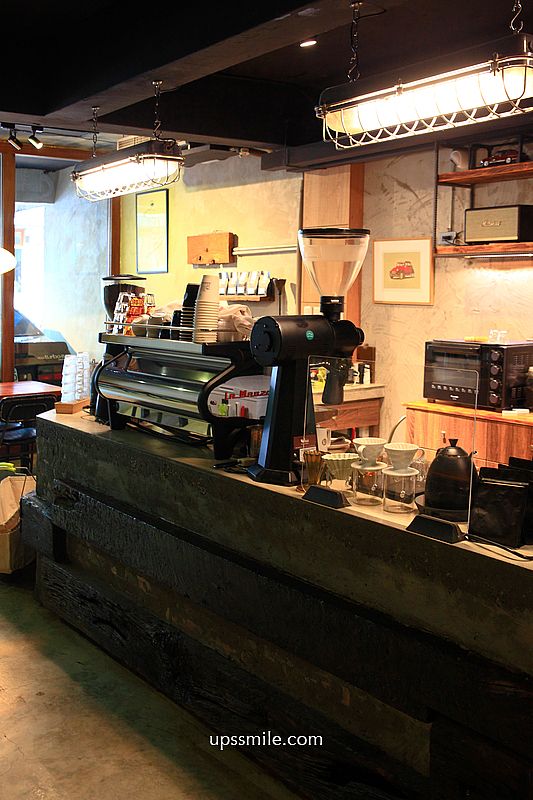 開放式咖啡吧台,一覽無遺,所有飲品與甜點這裡製作,工業風咖啡吧台,深色系咖啡吧台,萊斯萊斯咖啡機,質感很好,製作甜點,肉桂捲,香氣十足。