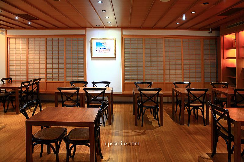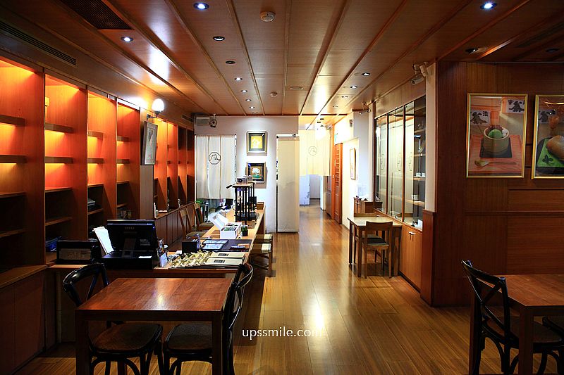 推開門入內,整個日式裝潢,木桌木椅,整個深色咖啡色系,沈穩內斂,室內安靜,與戶外車水馬龍有了區隔,別有洞天。