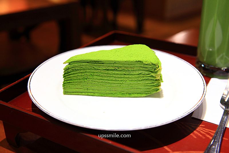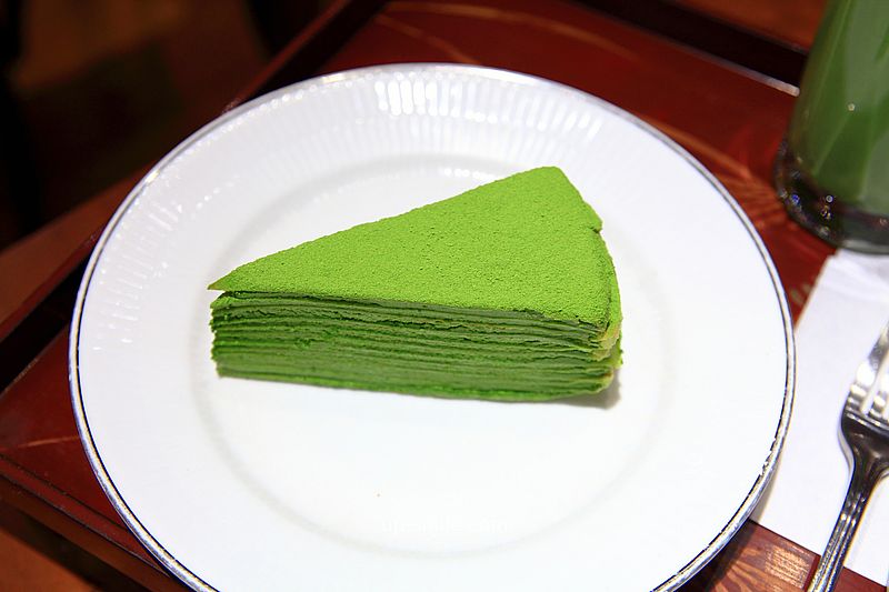 千層蛋糕上頭,鋪上一整層抹茶粉,綠到底,茶粉醇厚感明顯,抹茶控絕對會尖叫。