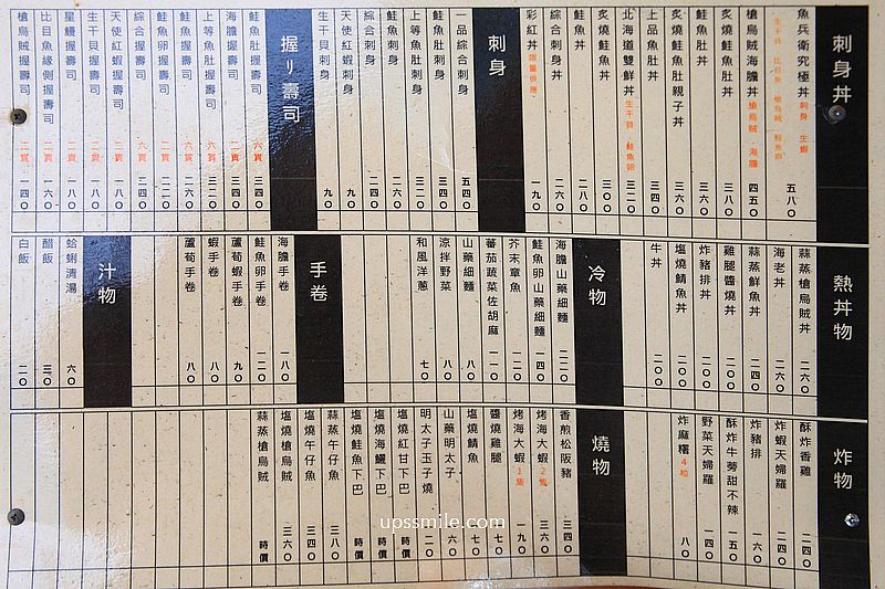 魚兵衛太春和食處菜單,一整大張,這是紙本,店內用餐得掃描QRcode桌上那掃描點餐,送單後,吃完離開前結帳。提供生魚片、丼飯、烤物炸物、手卷、握壽司等,從一百多元到三五百元都有提供,也可魚兵衛外帶。