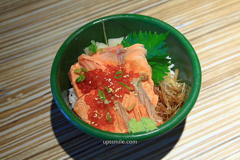 炙燒鮭魚肚親子丼360元,不吃生食的老饕,可選擇炙燒丼飯,非常新鮮,滿足愛吃海鮮丼飯老饕的胃。鮭魚大片,炙燒後,嫩口細緻肉質,搭配鮮美的魚卵,撒上芝麻,香氣十足。