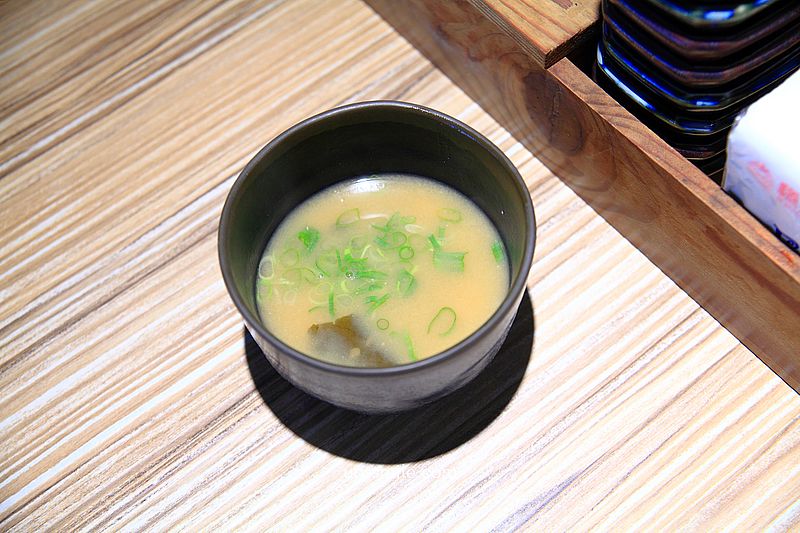 味增湯,聞起來很鹹香,喝起來不死鹹,味增湯有海帶配料,喝起來不會粉粉的,加入青蔥,好喝。